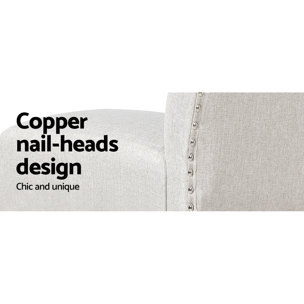 Nothing says elegance quite like an Artem Barstool from Artiss. The tufted button barstools upholstered in neutral, soft linen fabric add a touch of warmth to any stylish living space. The copper nail head trim design adds a unique metallic accent to your décor. The chairs are comprised of a sturdy wooden structure, dense and comfortable padding, sinuous spring support and solid rubberwood legs for a stable, secure chair. A high backrest and built-in footrest keep you comfortable and relaxed while anti-slip floor pads protect your guests from slipping and your floors from scrapes and scratches. Looking for a new way to lighten up your kitchen or living area? Look no further than the Artem Barstool set from Artiss.