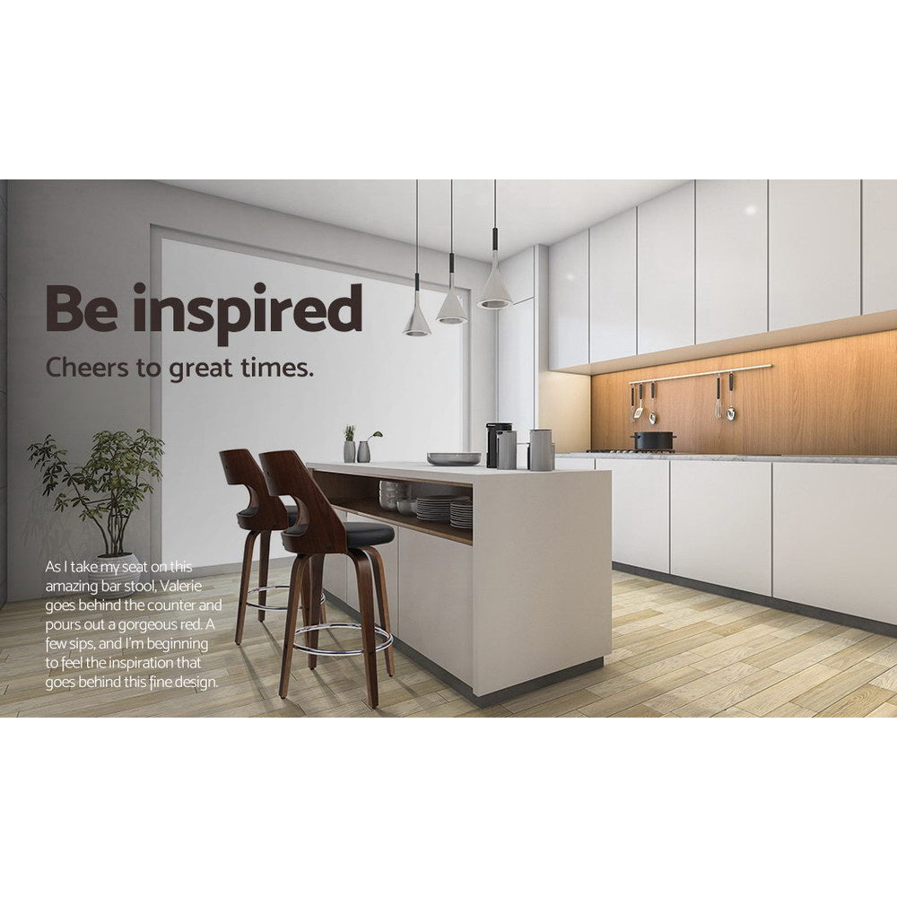 Wood, metal and PU leather combined together create one unforgettable bar stool! Crafted with solid wood, these bar stools feature a faux-leather seat and backrest that feel smooth and divine to sit on. The contoured backrest also provides ample support while the anti-slip rubber pads at the bottom of the legs remain firm and stop your floors from getting damged. Lastly, the chrome rectangular footrest lets you perch in style.