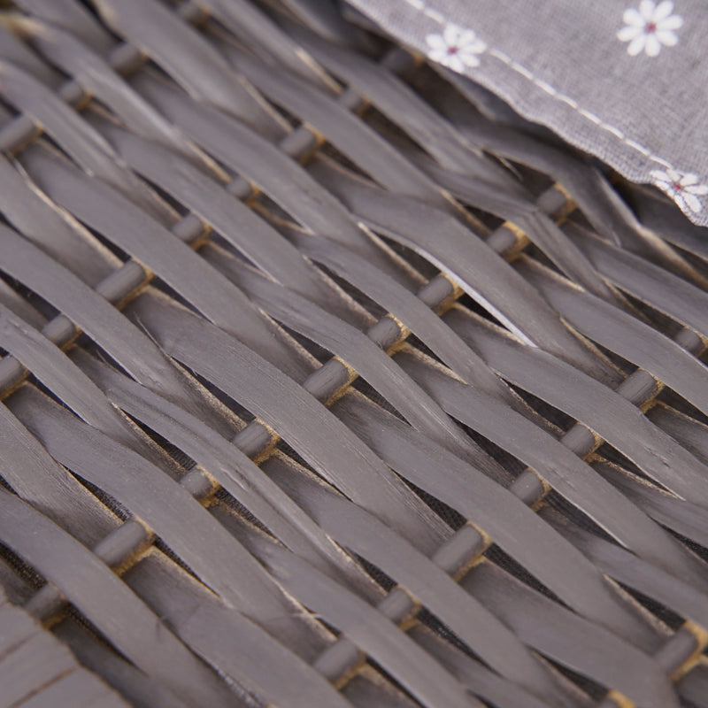 Grey Bedside Table with Wicker Basket