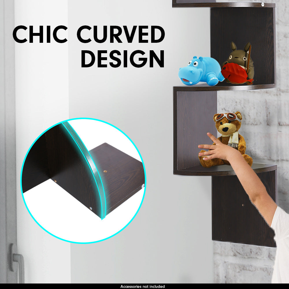 Sarantino 5 Tier Corner Wall Shelf Display Shelves Dvd Book Storage Rack Dark Brown
