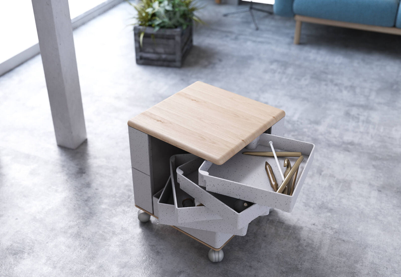 Unlike traditional storage units, the Helix redefines convenience and style with its rotatable drawers and modular design. It’s the perfect blend of aesthetics and practicality, designed to meet the demands of modern living.