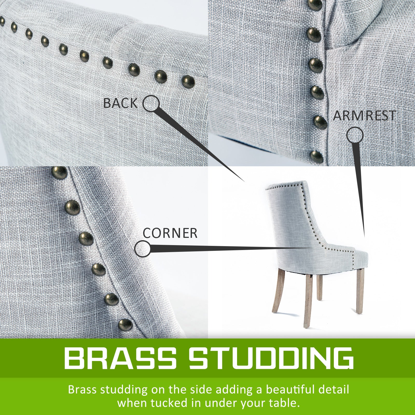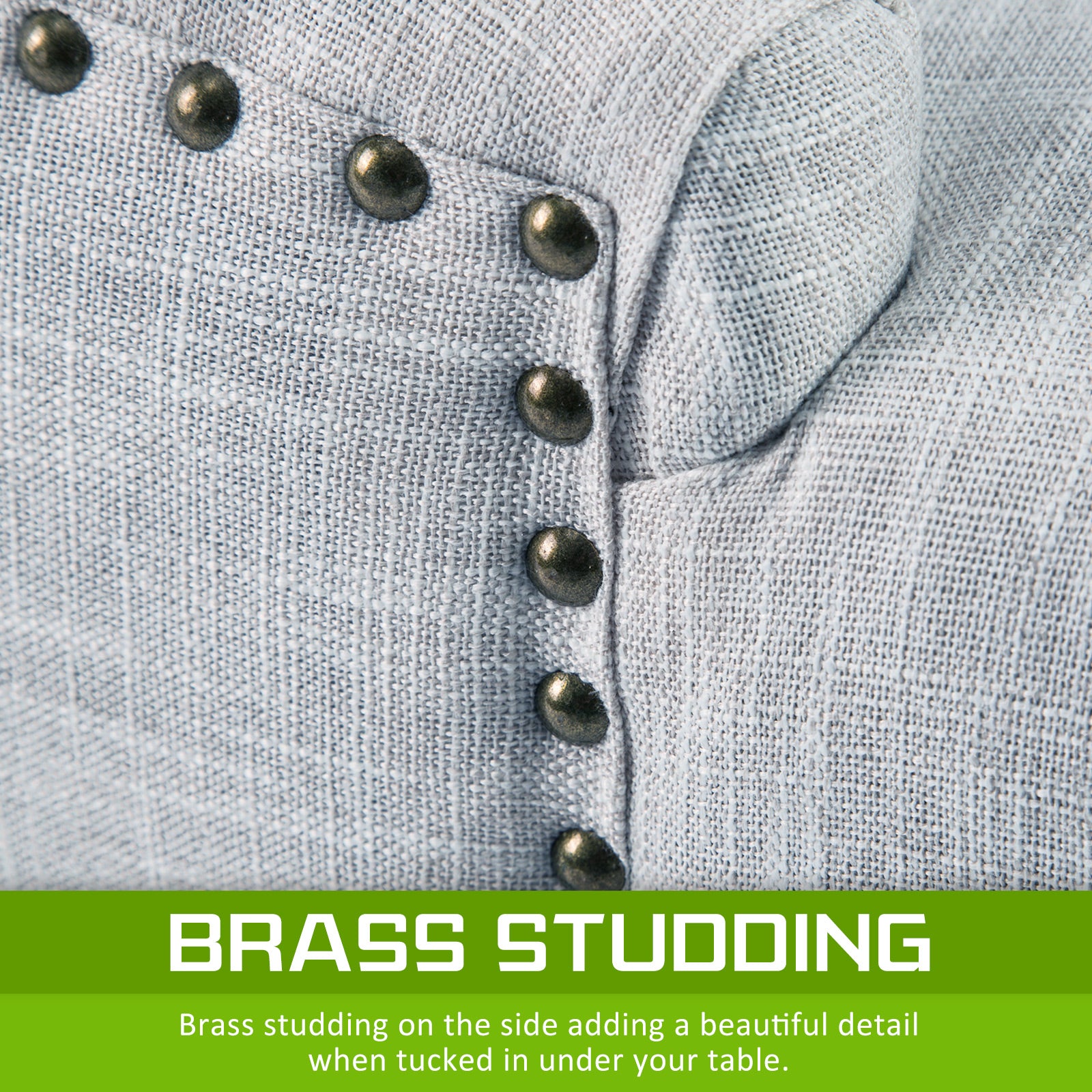 Upholstery Fabric: High-quality linen fabric with brass studs