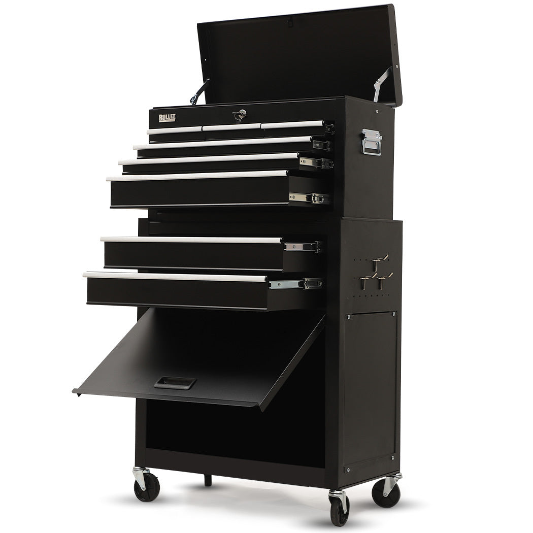 Bullet 8 Drawer Tool Box Cabinet Chest Storage, Toolbox Garage Organiser Set, Black