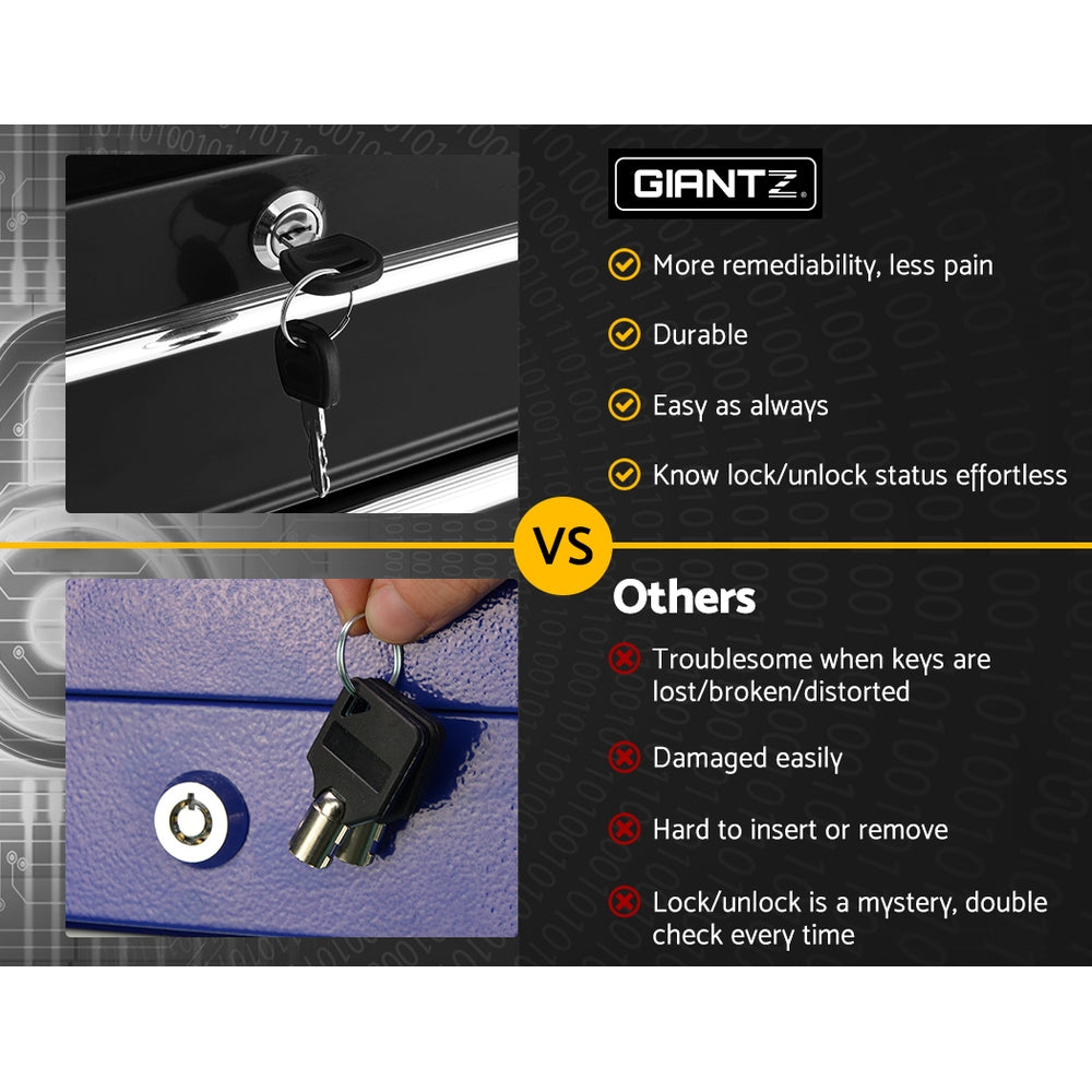 This robust, multi-drawer Giantz Tool Trolley is an essential for any workshop. Crafted from durable steel, it features smooth ball-bearing slides for easy access and a secure lock system for safety. Its spacious design includes varying drawer sizes to accommodate tools of all shapes, complete with non-slip liners. The chest is also mounted on omni-directional castors with locakble front wheels, ensuring a smooth maneuverability and stable positioning. Sleek and functional, it's perfect for organizing and protecting your valuable tools.