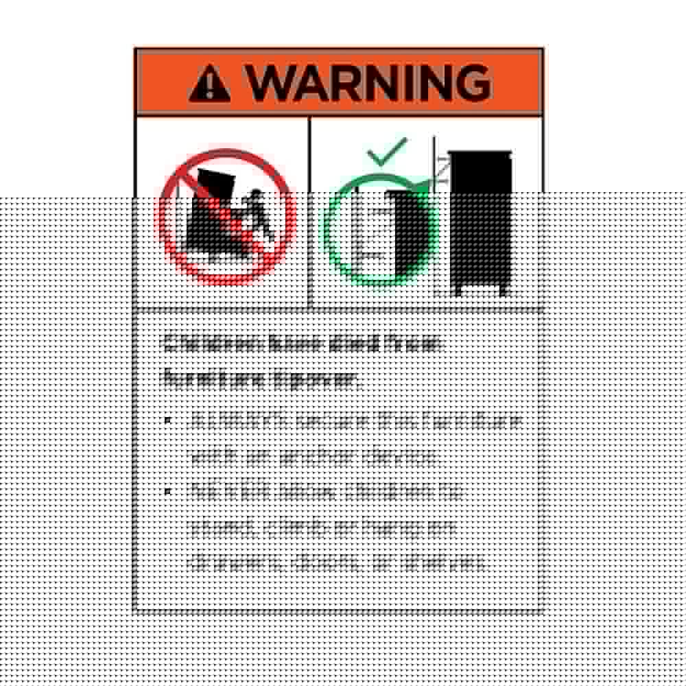 • NEVER allow children to stand, climb, or hang on drawers, doors, or shelves.