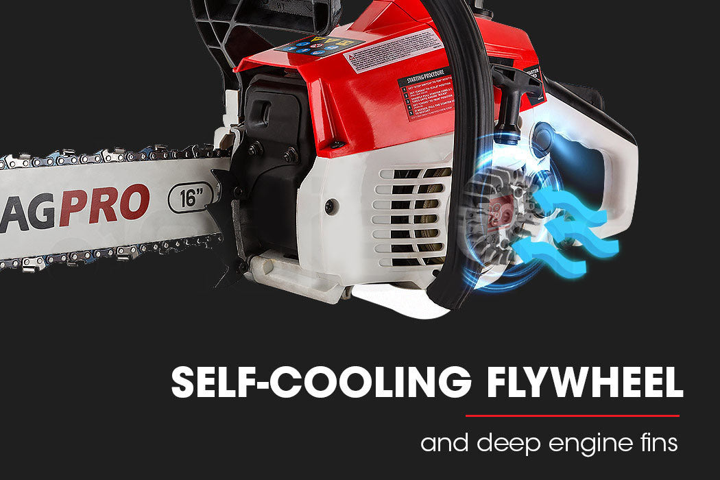 The Baumr-AG Pro 16" Chainsaw is perfect for trady or home handy man who likes to work hard and pack light. With a 3.2hp 38cc engine and direct air injection carburettor this mighty mini packs a serious punch and it comes loaded with great features, like a quick chain tensioner, fast primer, auto chain brake and correctly sized 16" bar for fast cutting and superior performance.