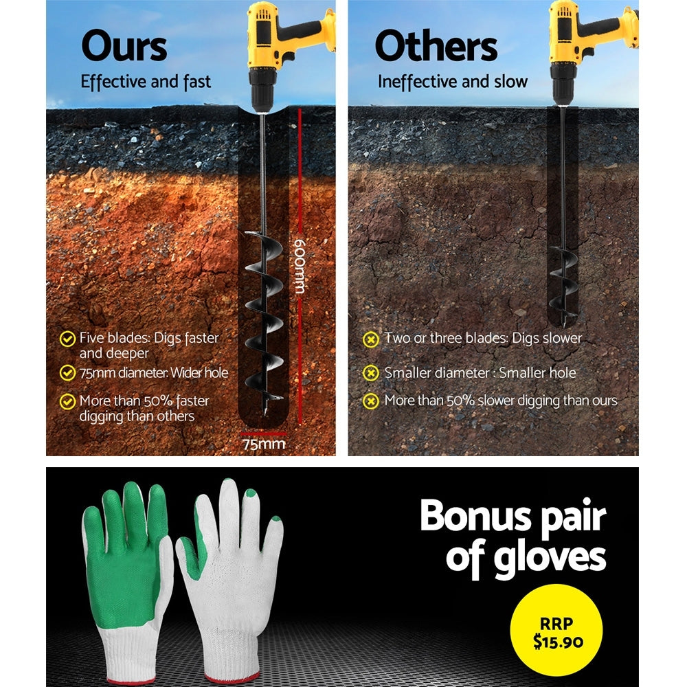 Power Garden Auger Small Earth Planter 75 X 600MM Black
