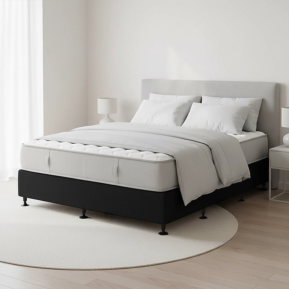 Palermo King Single Ensemble Bed Base Midnight Black Linen Fabric