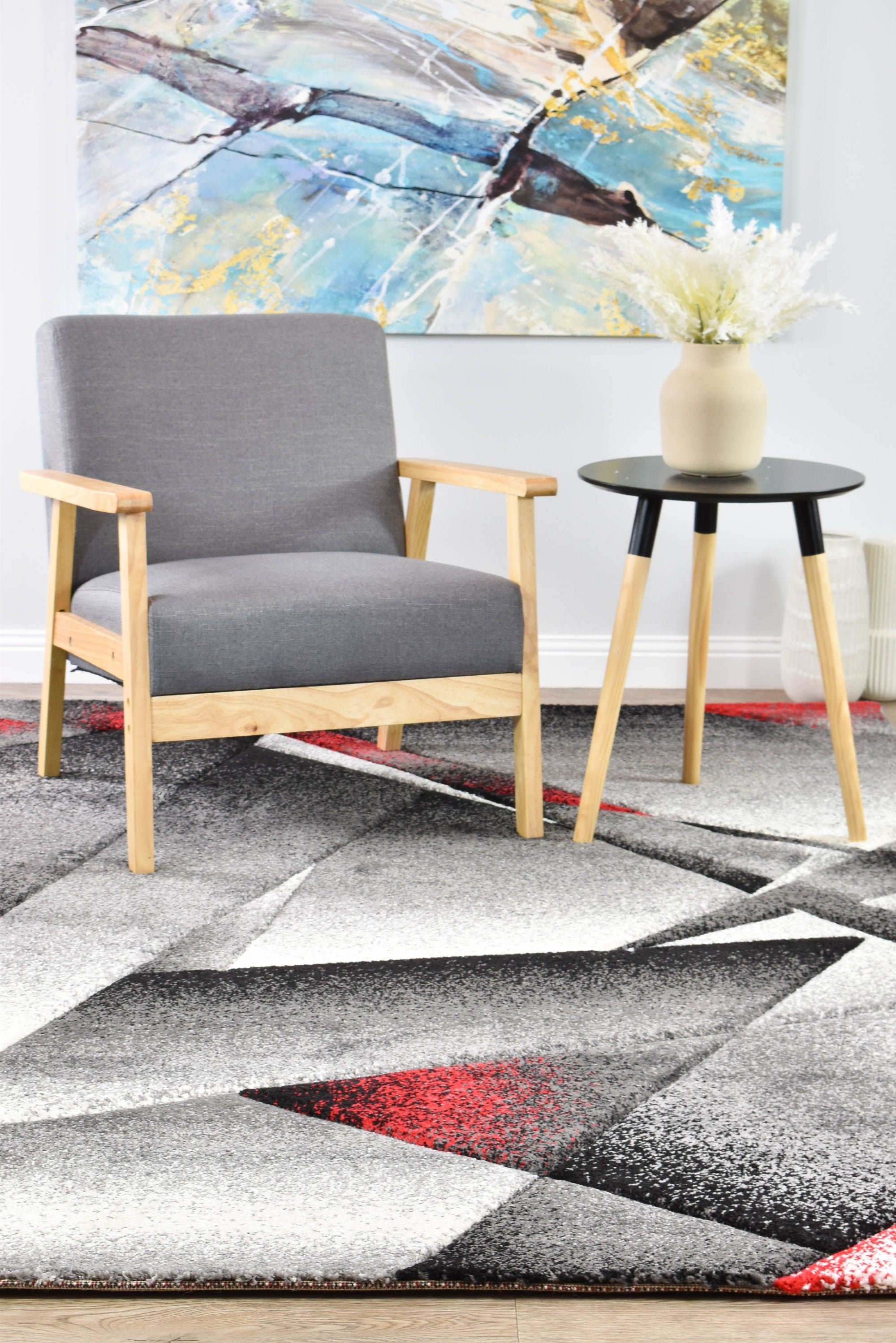 Novas Grey Sun Red Rug
