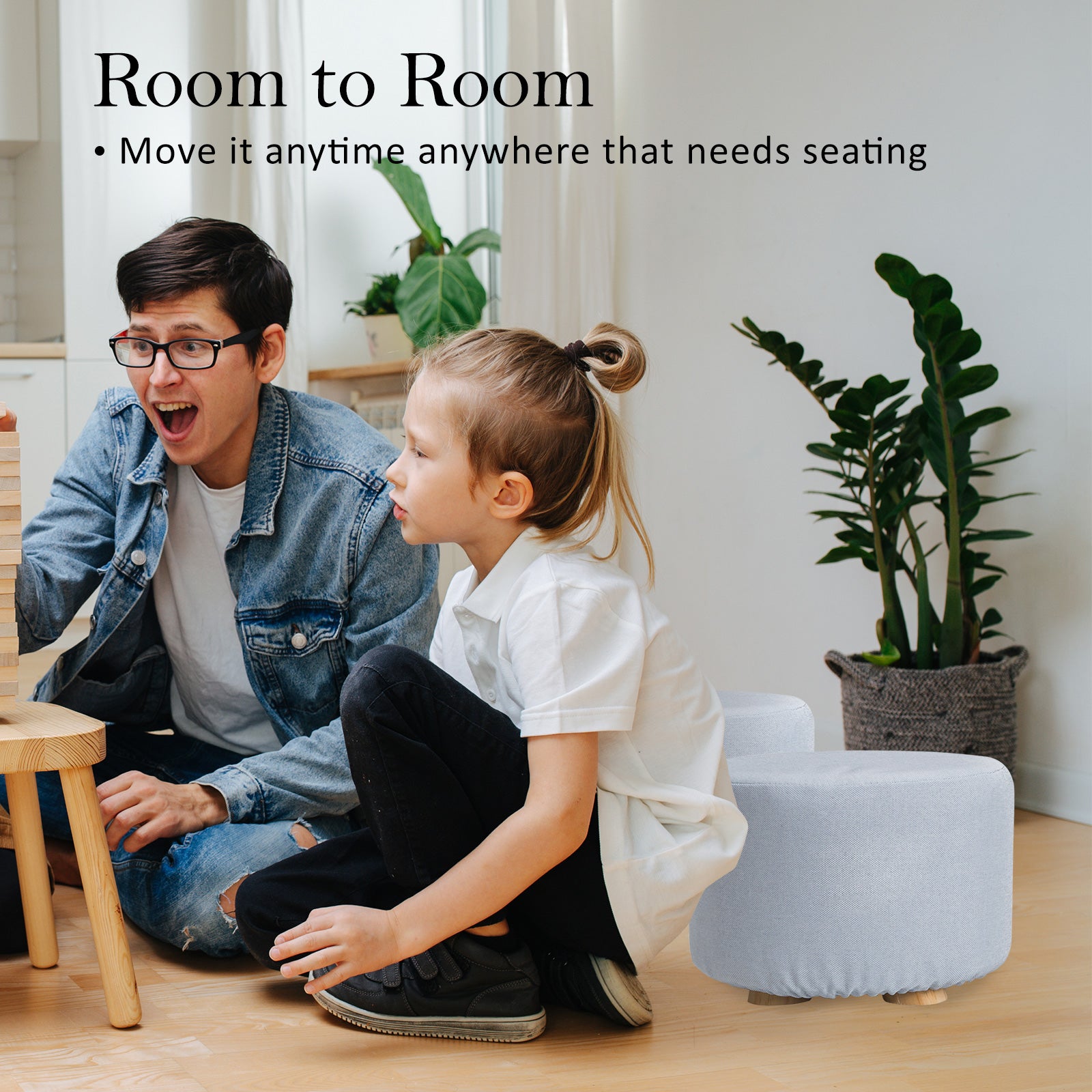 2X Fabric Ottoman Round Wooden Leg Foot Stool LIGHT BLUE