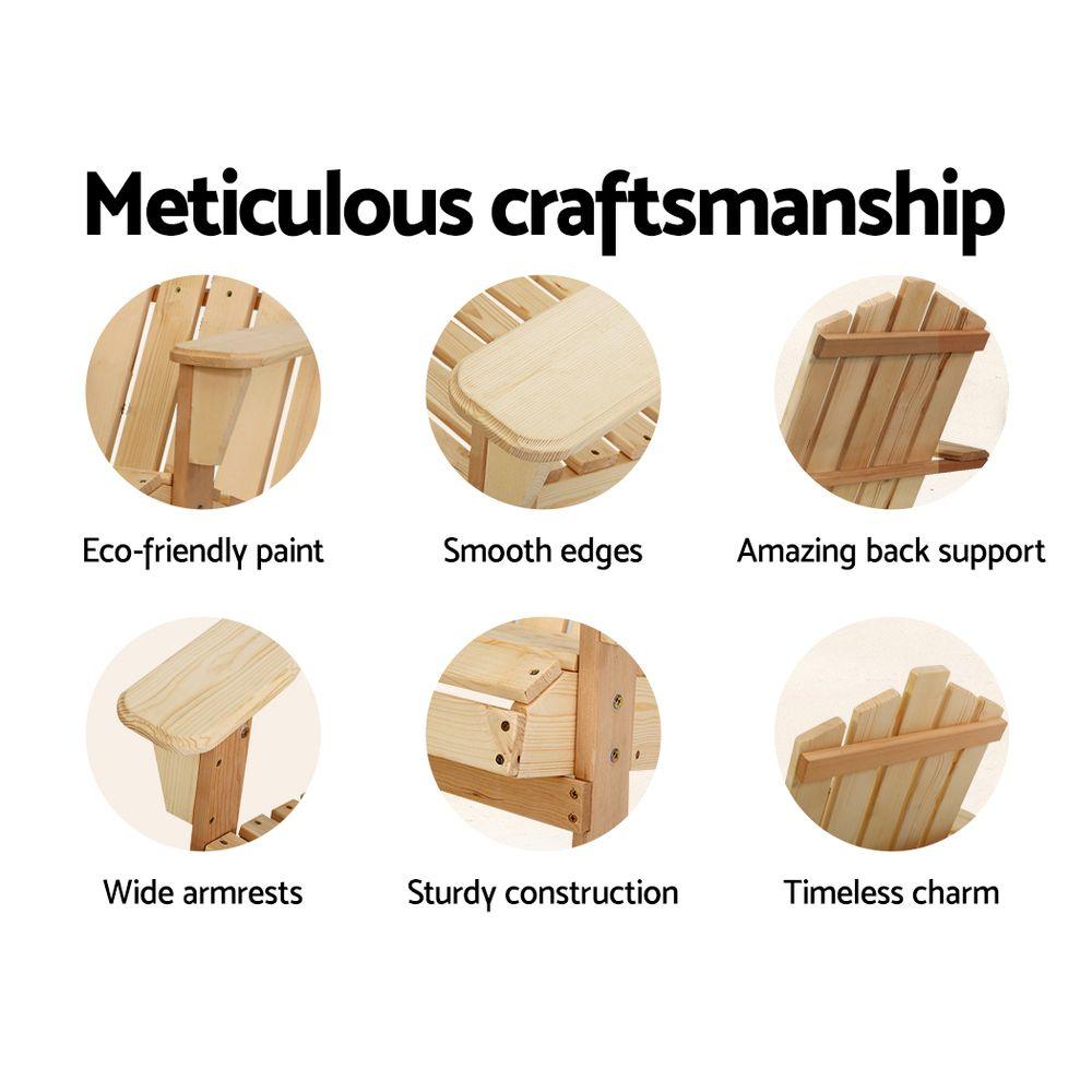 Gardeon 3PC Adirondack Outdoor Table and Chairs Wooden Beach Chair Natural