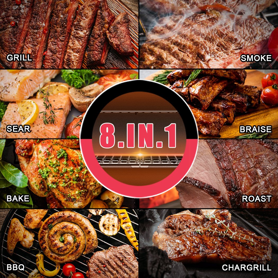 This Ultimate 8-In-1 Pellet Grill Can BBQ,Bake,Roast,Braise,Smoke,Sear,Broil,And Char-Grill. Hot And Fast Or Low And Slow. We Recommend All-Natural ASMOKE Applewood Pellets To Achieve Rich Mouth-Watering Flavor. Try It And You'll Taste The Difference That There Isn't Any Easier Way To Get The Flavor Of Wood Smoked Meals Than With Our Pellet Grill.