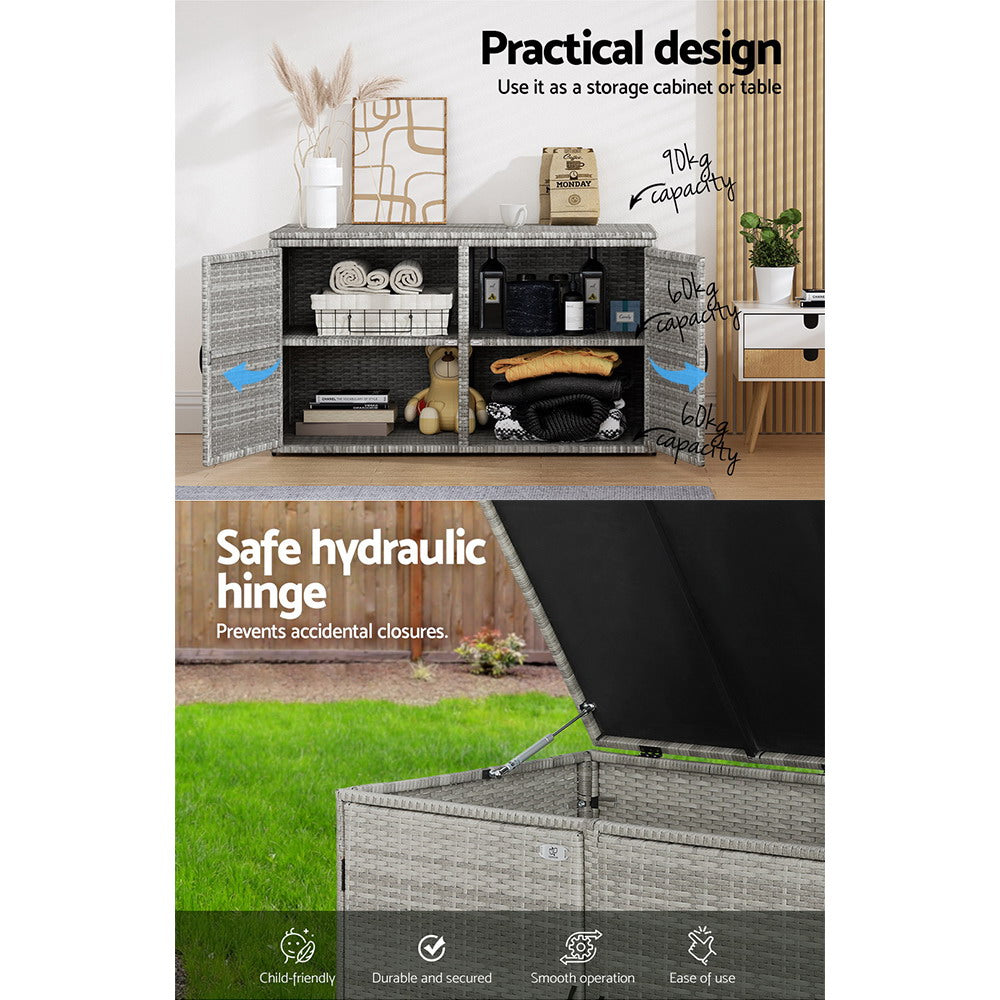 333L Outdoor Grey Wicker Storage Box Cabinet