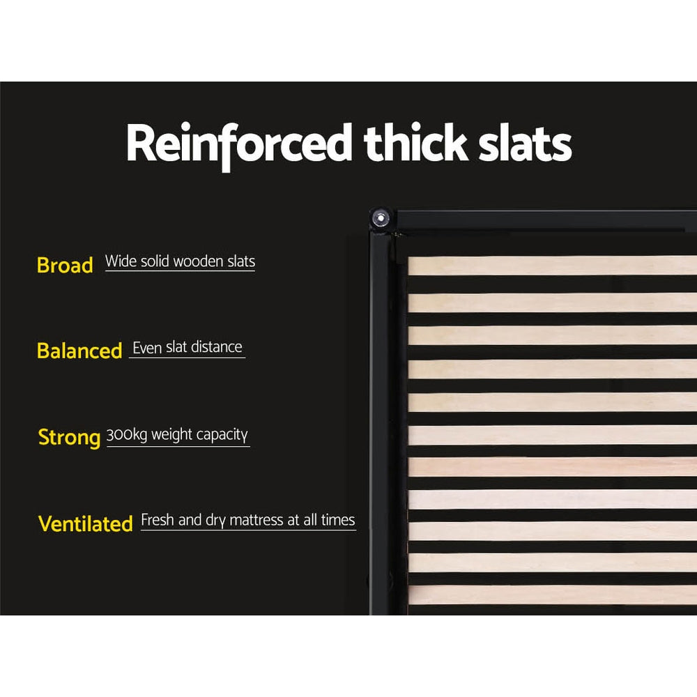 Our Toki Gas-Lift Bed Frame combines exquisite style with great storage practicality. The frame is built with reinforced steel construction while the wooden arched slat frame helps to distribute weight evenly across the framework. Heavy-duty connectors are used throughout the frame to increase its durability and reliability with long -term robust use. And for an elegant finish, the bed frame is padded with high-density foam and upholstered with premium linen fabric. Best of all, the bed frame comes with a gas-lift storage system where you will find acres of space underneath the slatted frame to store all your bedroom and home essentials. And if so desired, the bed frame can be matched with our complementary bed head for a complete look. The bed frame is designed to fit standard Australian-sized mattress.