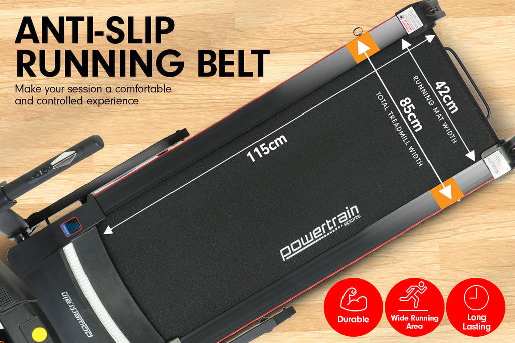 Powertrain V30 foldable treadmill is manufactured with keeping home fitness regime in mind to make indoor workouts much easier and effective with easy to use design. The spacious tread belt is perfect for running or walking comfortably.