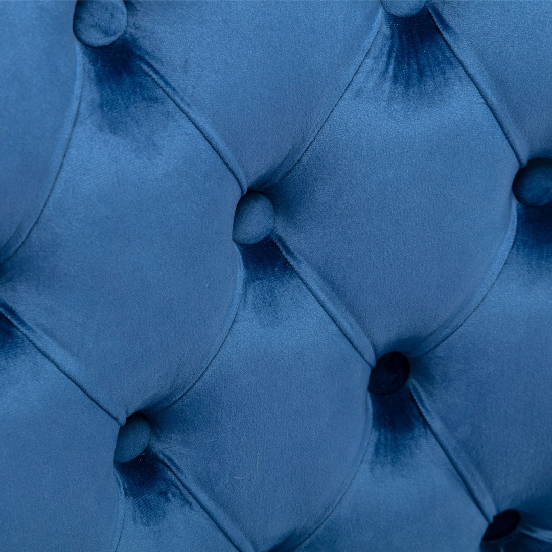 2x Velvet Dining Chairs Upholstered Tufted Kitchen Chair with Solid Wood Legs Stud Trim and Ring-Blue