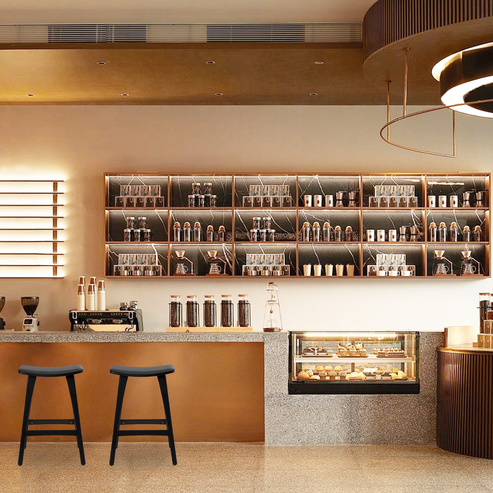 2x Wooden Bar Stool Padded PU Leather Dining Chair KANSO 65cm BLACK