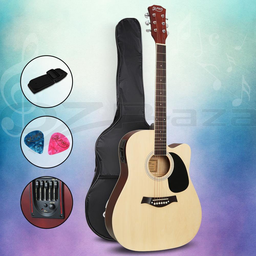 Alpha 41 Inch Acoustic Guitar Equaliser Electric Output Jack Cutaway Wood