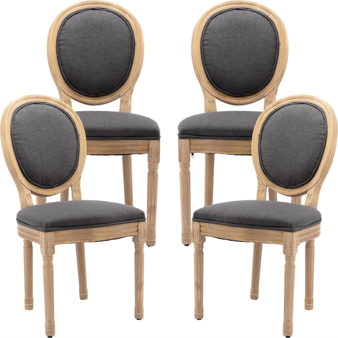 AADEN 4x Linen Dining Chairs with Solid Wood Legs Grey