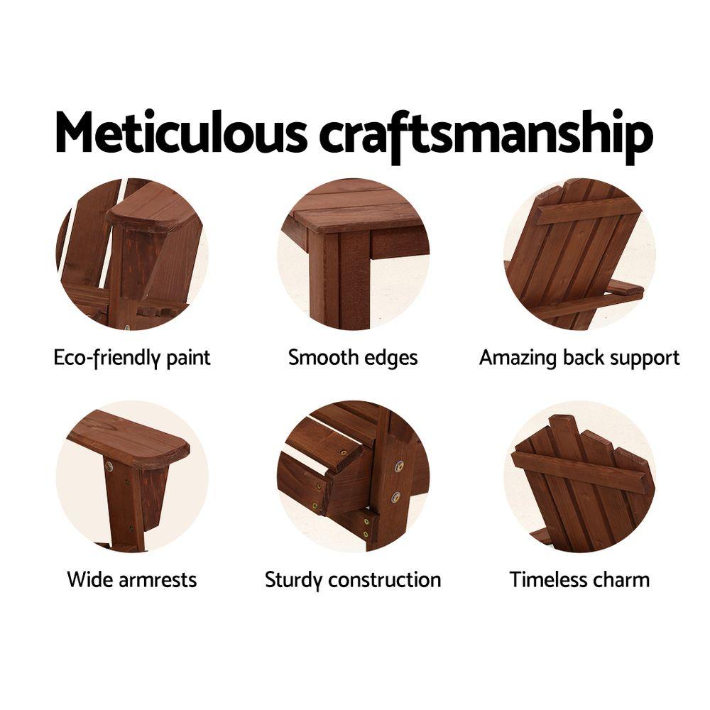Gardeon 3PC Adirondack Outdoor Table and Chairs Wooden Beach Chair Brown