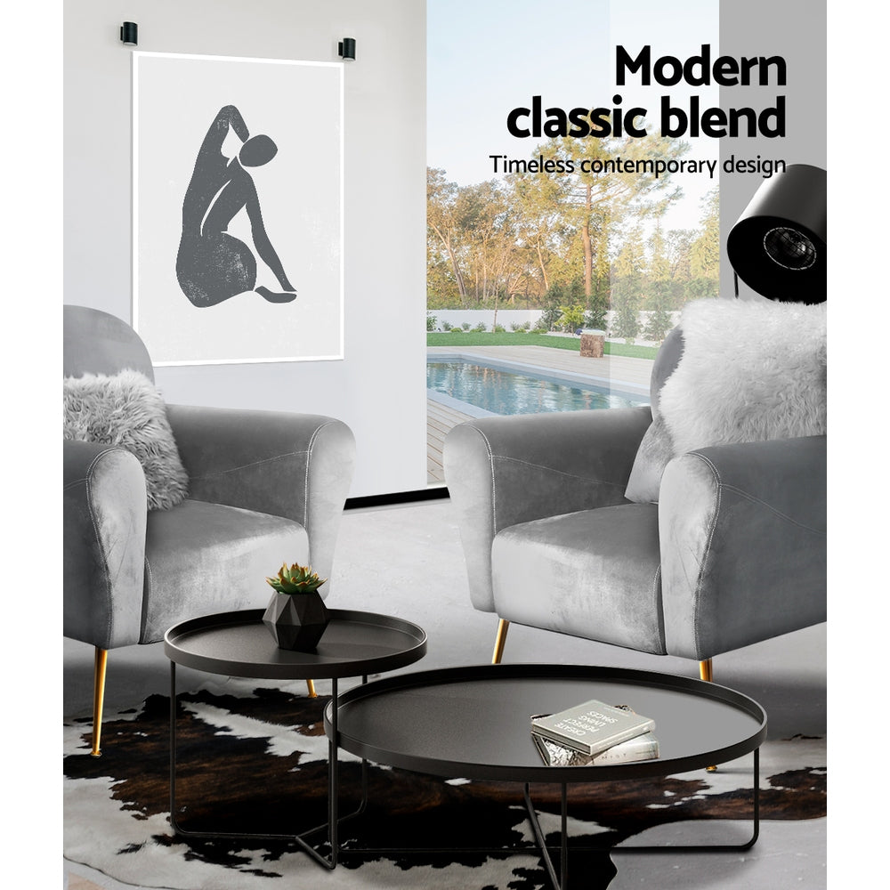 Grey Velvet Cushion Accent Armchairs Chairs Sofa