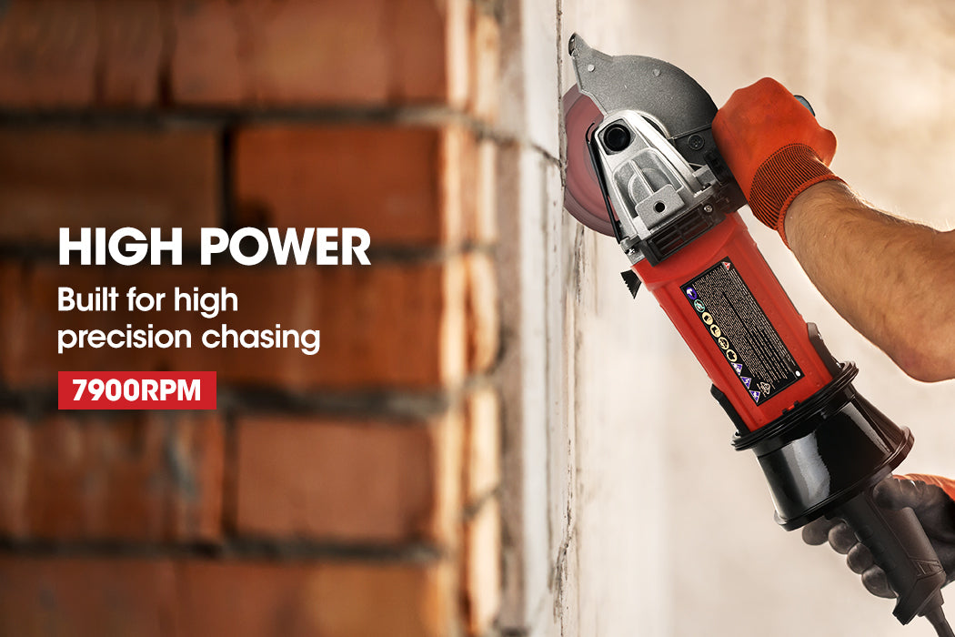 This unit is equipped with a powerful heavy-duty 1700W motor that efficiently chase 41mm deep channels through tough concrete, brickwork and besser blocks at 7900rpm.
