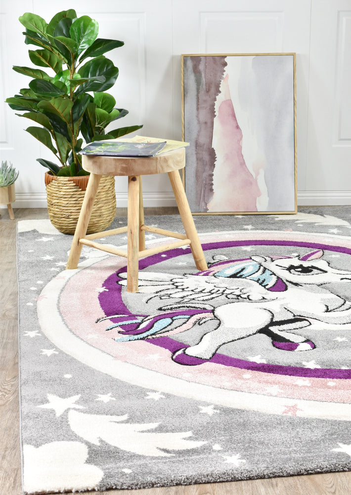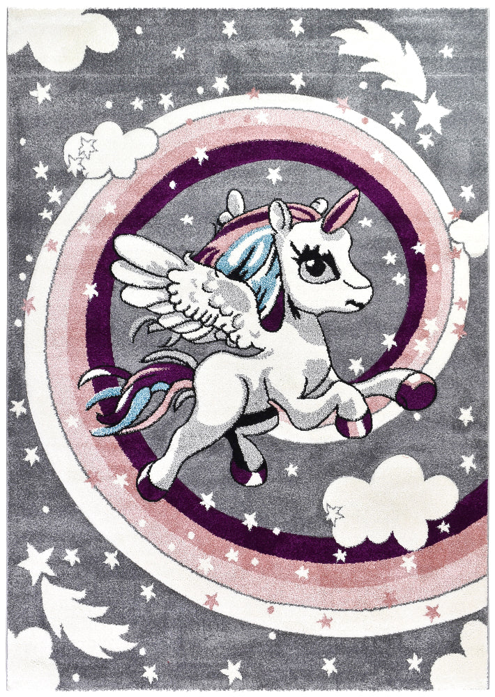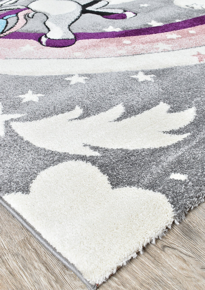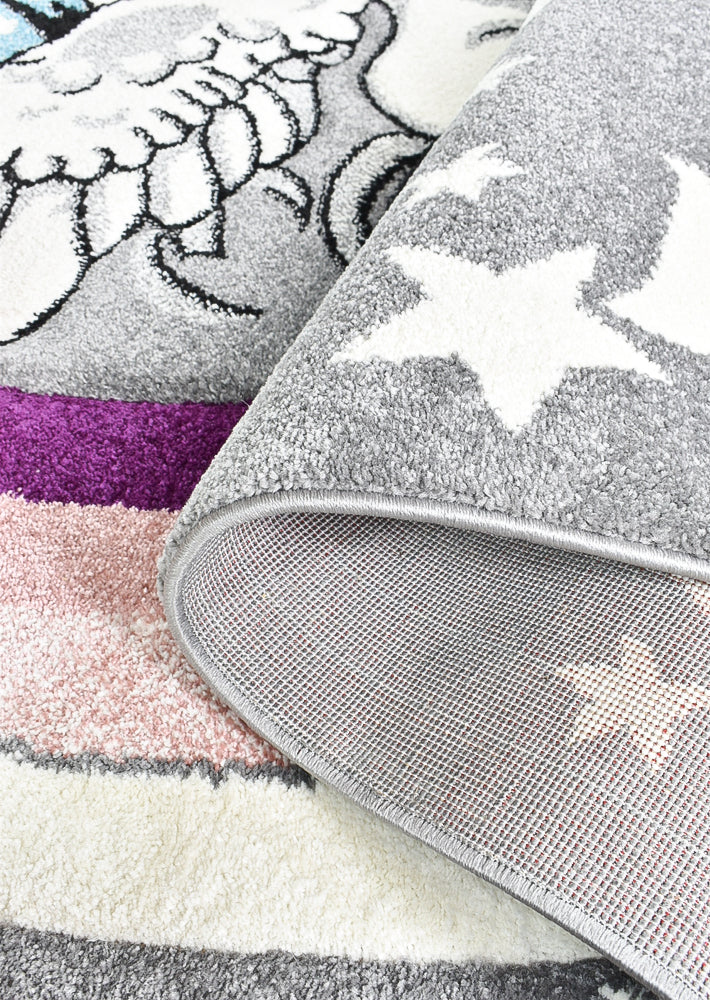 Fantasy pastels woven into a magical scene of unicorns riding on rainbows across the sky, make the Unicorn Cotton Candy rug a joy to behold. This adorable, soft-pile rug will become your little girl’s favorite play area, and it’s bound to make her the envy of all her friends. Apart from being absolutely beautiful this rug is also durable with years of hardwearing use.