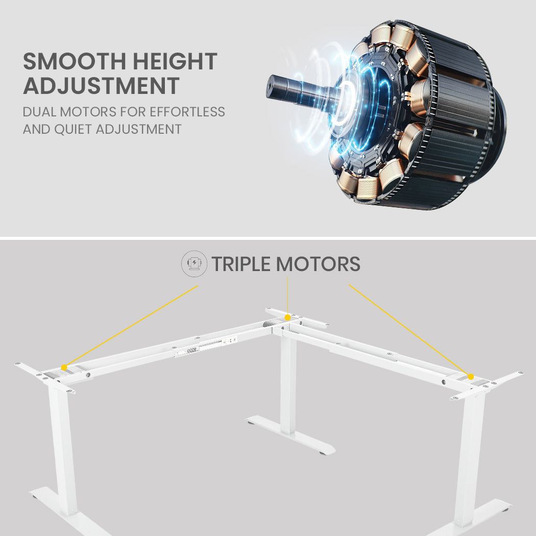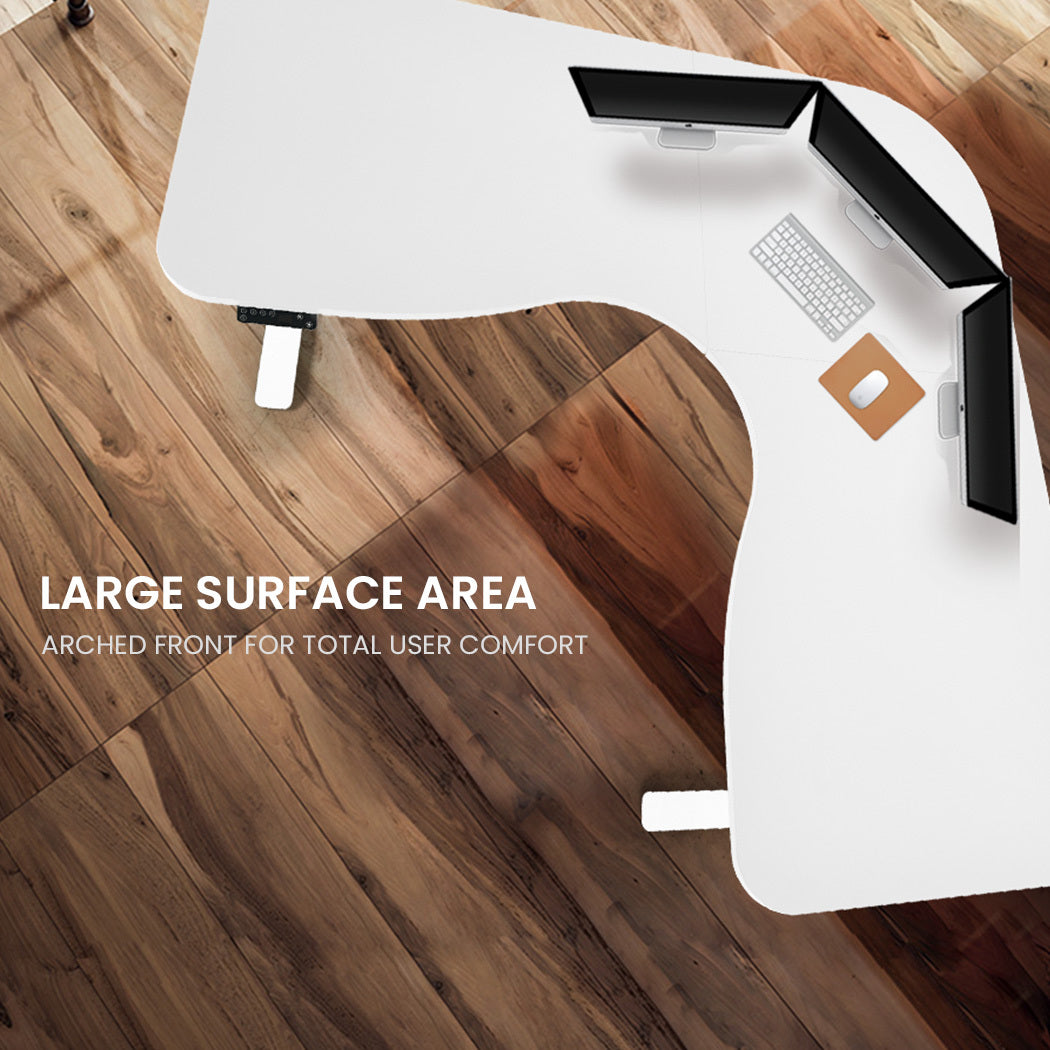 FORTIA 173W x 173W x 75D 3-Motor 120kg Load Adjustable Electric Sit to Stand Up Corner Desk White/White Frame