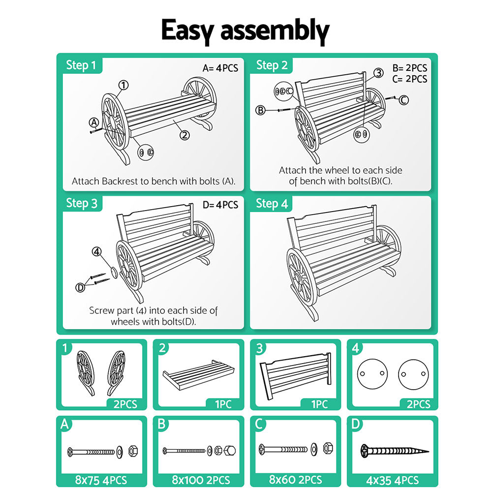 Time to have a seat on the wild wild west side. That is right, our Wagon Wheel Bench definitely looks the part to spice up your garden and backyard with some country soul. From its period styling to its rustic imported Canadian Fir wood design, the bench is solidly built to seat three people comfortably. The attention to detail is excellent with finely crafted wagon-wheel armrests, a smooth and supportive backrest and exceptional strength and beautiful grains from the Fir wood finish. In fact, the bench can take on a massive weight of up to 300kg. Better still, the Fir wood is weather-resistant, UV-resistant and blessed with a natural resistance to rot and pests. Everything you want in a durable and long lasting garden bench under the great Australian sun and rain. Overall, the bench is given a burnt wood appearance that not only enhances its appearance but also gives it a worn-in style that exudes lots of historic vibes. Our Wagon Wheel Bench should be riding high on your shortlist of garden bench purchase, so rein one in today.