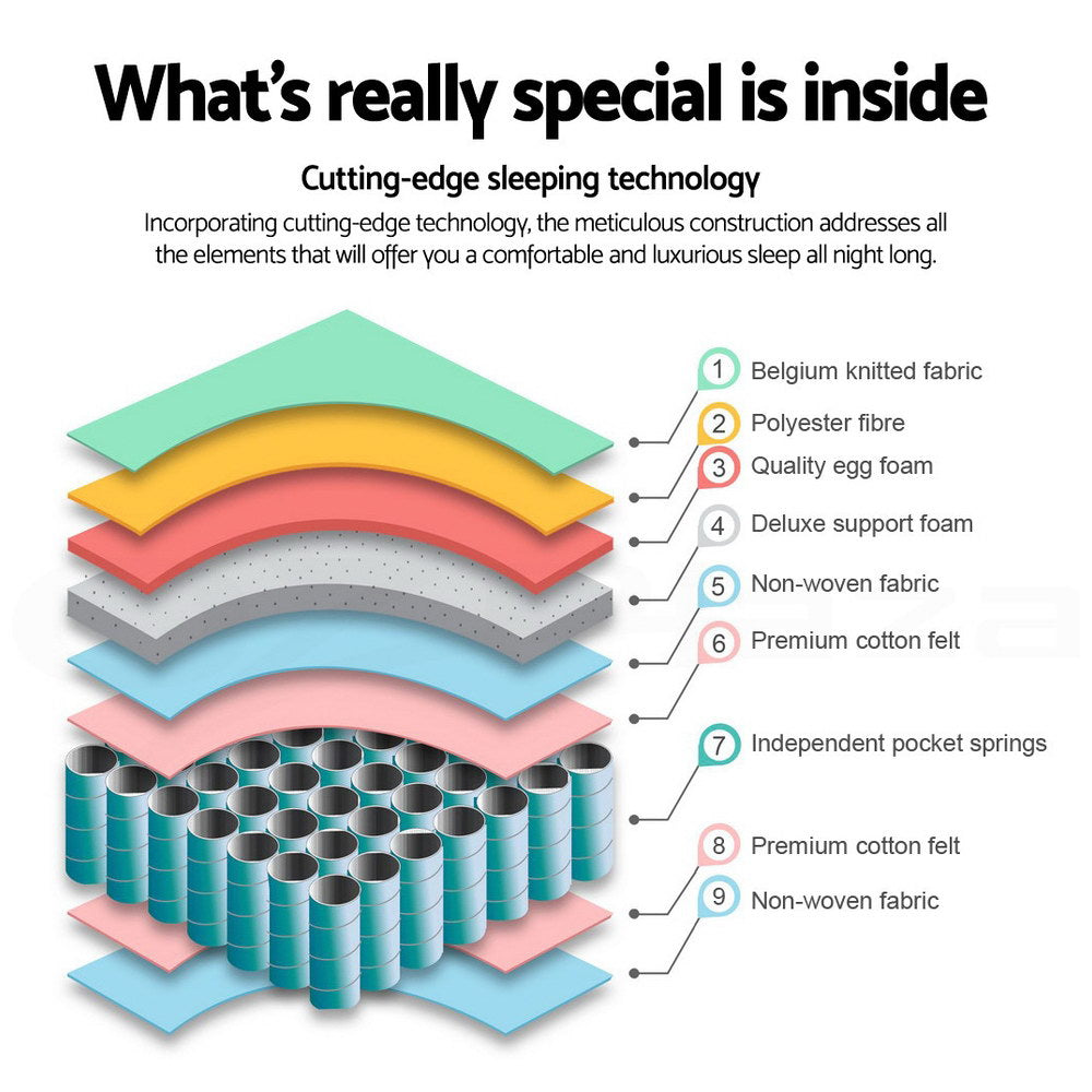 The mattress is designed to offer firm support with its six working turns per coil system, a fact that is critical in determining the right amount of support needed. The independent pocketed spring design also ensures that your body weight is evenly absorbed and distributed throughout the mattress. The top layer of high-density foam delivers long-lasting comfort that you'll surely appreciate for many years to come.