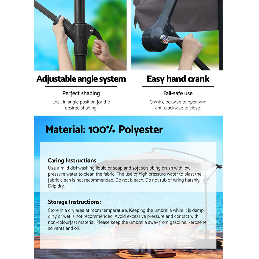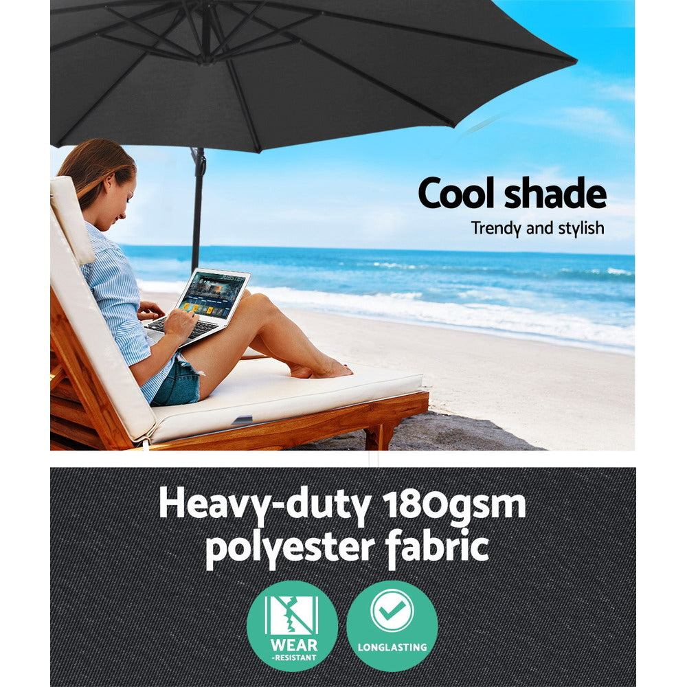 Instahut 3m Outdoor Umbrella Cantilever Beach Garden Patio Charcoal
