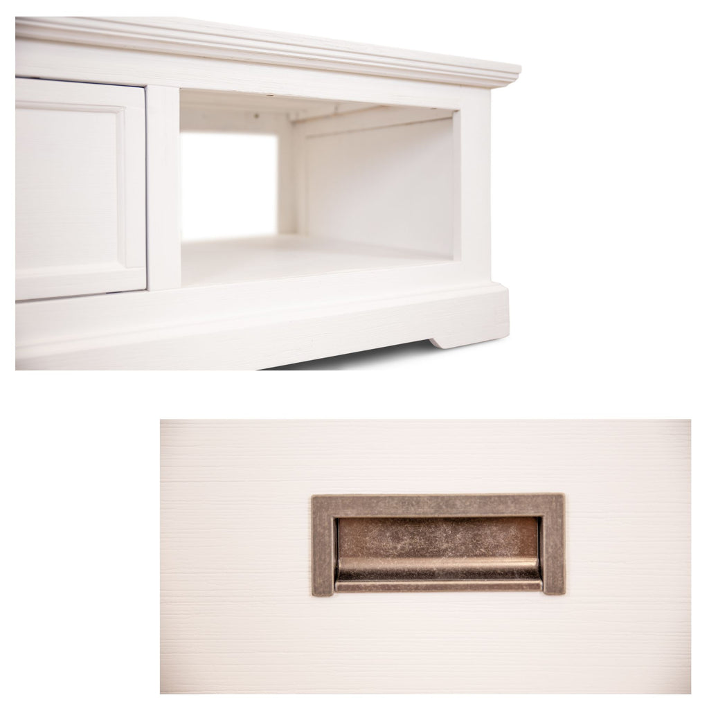 This sleek and beautifully designed 1-drawer and 1-niche coffee table is composed of sustainably sourced Solid Acacia and MDF. The wood ensures the strength and durability of the coffee table for years to come, taking care of your storage needs. The coffee table is angled just at the right places to maximize its clean line aesthetics.Designed in the coastal style, the centre table features a minimalist, functional, and contemporary design. Due to the vivid white colour, it exudes a serene feel in the atmosphere, which helps in creating truly joyful moments with your family. The coffee table comes with a one-year warranty.