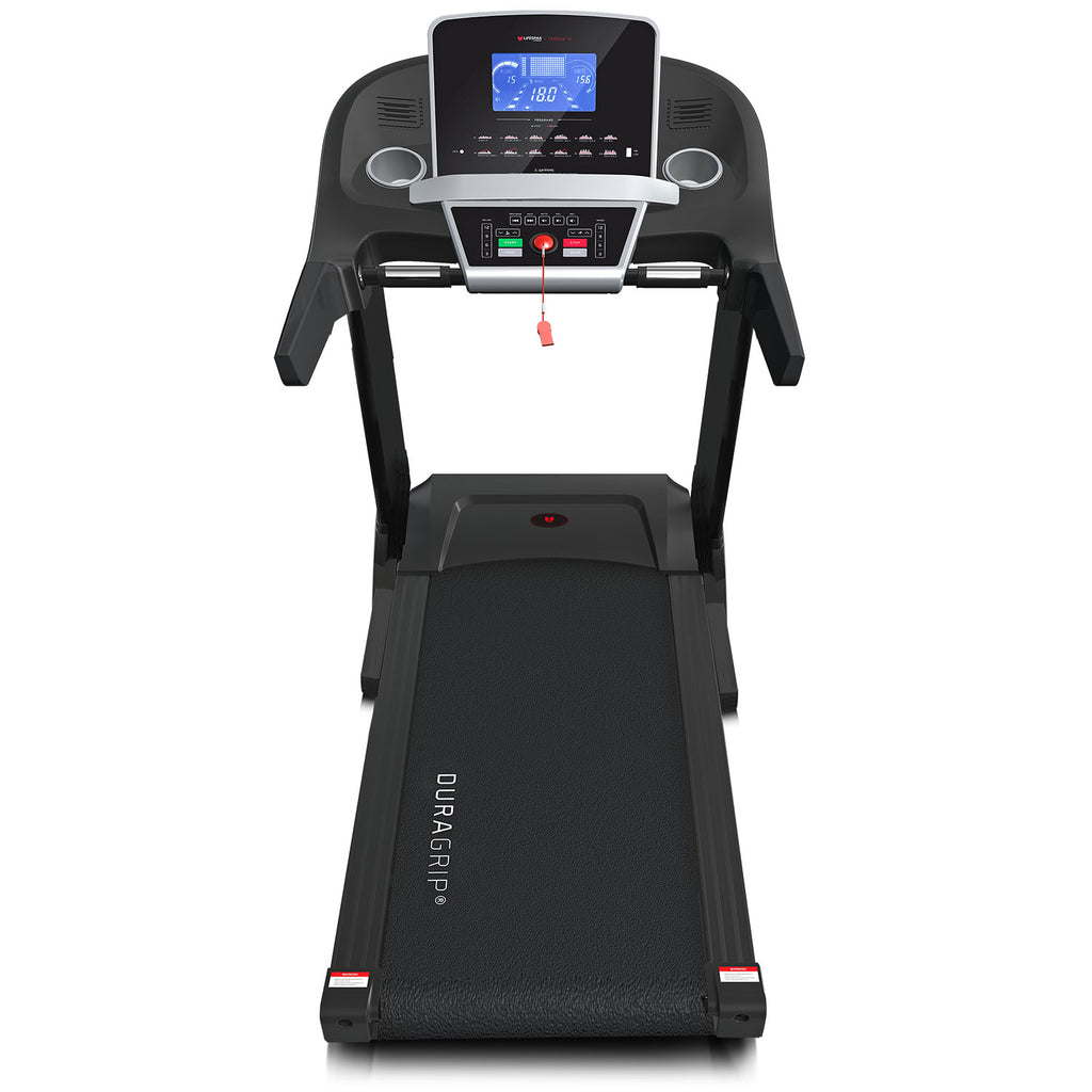 Get the personal trainer experience at home with the Lifespan Fitness Torque 3 treadmill. A whopping 99 preset training programs offer huge fitness challenges, and an additional 3 custom programs let you train your way. Feel confident at this pace on a spacious 1300mm x 540mm (Length x Width) running surface with the comfortable and safe DuraGrip belt.