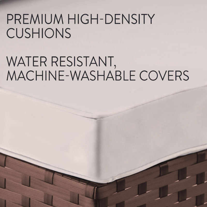 Experience ultimate comfort with the Daydream Ottoman, a chic and budget-friendly outdoor furniture that will transport you to your own personal oasis. Designed with plush foam seat cushions and a durable steel frame, this versatile piece allows for various set-ups, including U-shape and L-shape combinations, perfect for enjoying the great outdoors.