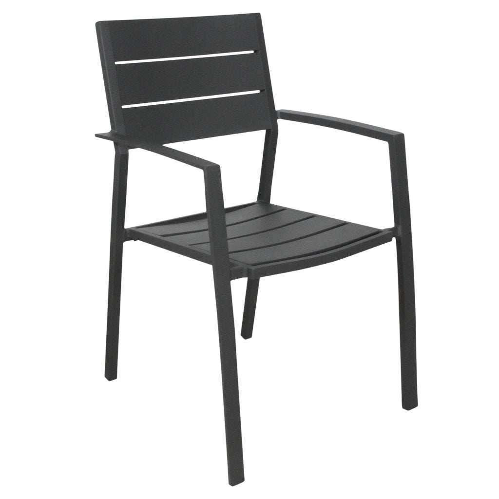 Here is a 4-piece set of distinctive dining chairs that look beautiful in outdoor areas. Designed in industrial style, the chairs are sturdy and compact and look nice when paired with an outdoor dining table of any design. The structural frame of the chair is made of non-rusting aluminum. The metal frame provides great durability and strength. The lightweight aluminium frame gives it great portability, and elegantly styled legs give it a good look. The chairs in gunmetal colour are easy to clean and maintain as well. The fully assembled chairs are durable, and their frame comes with a one-year warranty.