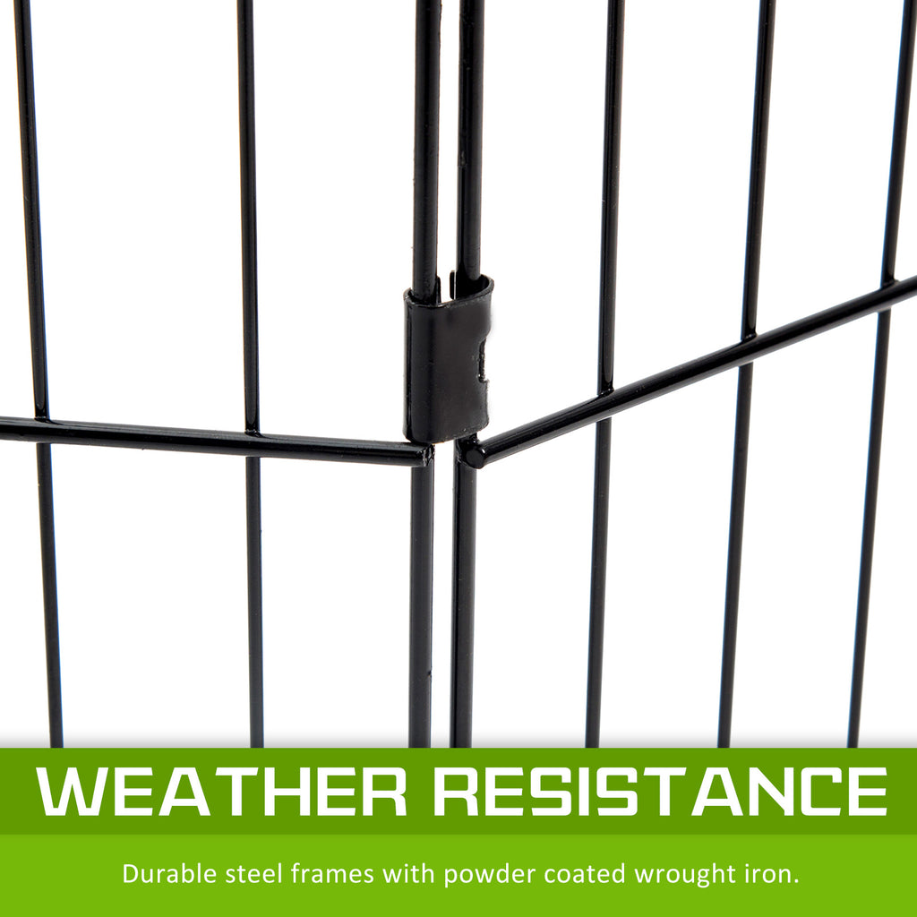 It features as 8 panels for multi-configuration which allows you to turn your playpen into different shapes. Made of durable steel frames construction with black powder coat finish provides Long Lasting Protection and weather resistance. The access door with bolt latches you can be sure that your pet doesn't have the opportunity to run away and the round edges ensure pet safety.
