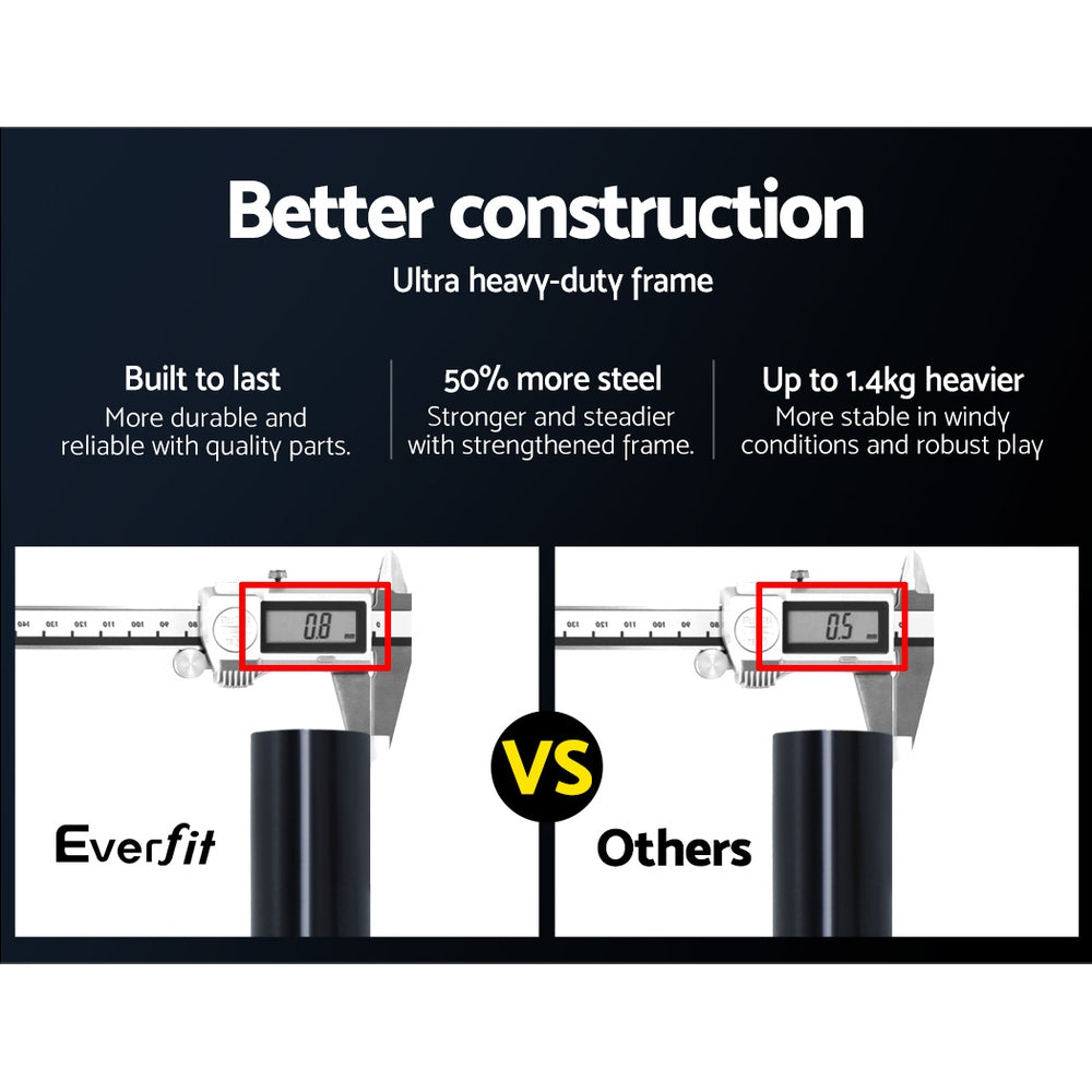 If you love the beautiful game, you will surely love the Everfit Portable Goal. Easy to set up, the portable goal comes with a sturdy powder-coated steel frame and a high-density PE net to practice your free kicks, penalty kicks and more. Get another one and you can have a five or seven-a-aside game in any flat open ground. The frame itself is made with 50% more steel for extra durability. Plus, the four ground stakes ensure that the entire ensemble stays firmly in place with robust play. Not least, you can carry the goal easily to any location for a game with the bonus carry bag. Ready to be the next Ronaldo?