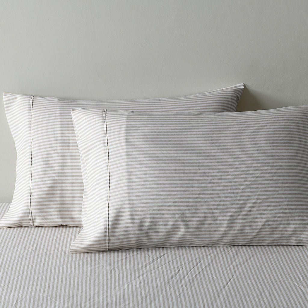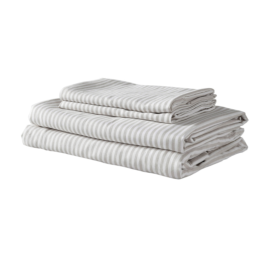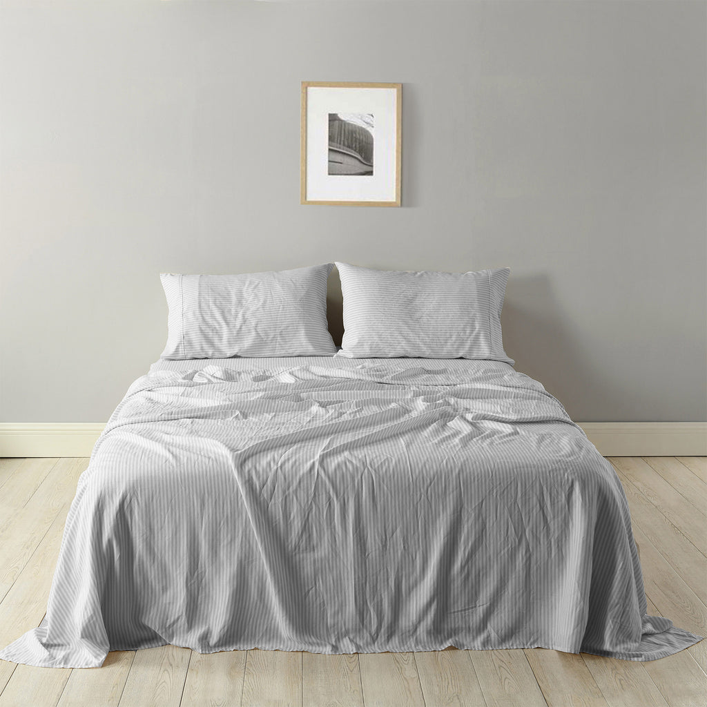 Royal Comfort Stripes Linen Blend Sheet Set Bedding Luxury Breathable Ultra Soft - King - Grey