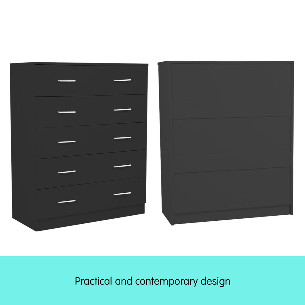 Sarantino Tallboy Dresser 6 Chest Of Drawers Table Cabinet Bedroom Storage Black
