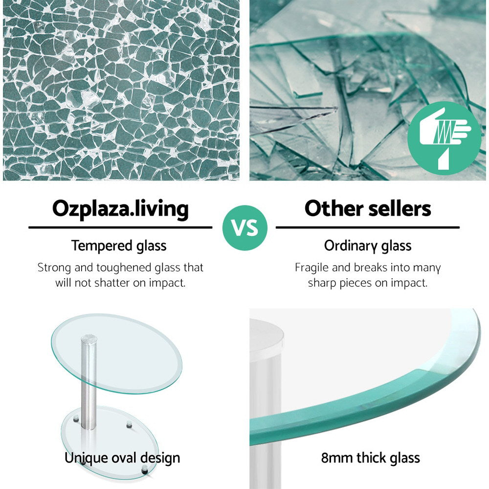 Artiss Coffee Table Oval Tempered Glass Side End Beside Tables Cafe 45cm
