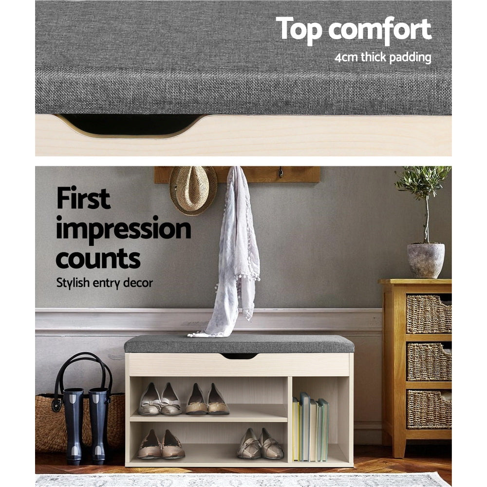 Artiss Shoe Rack Cabinet Bench 9 Pairs Pine Dora